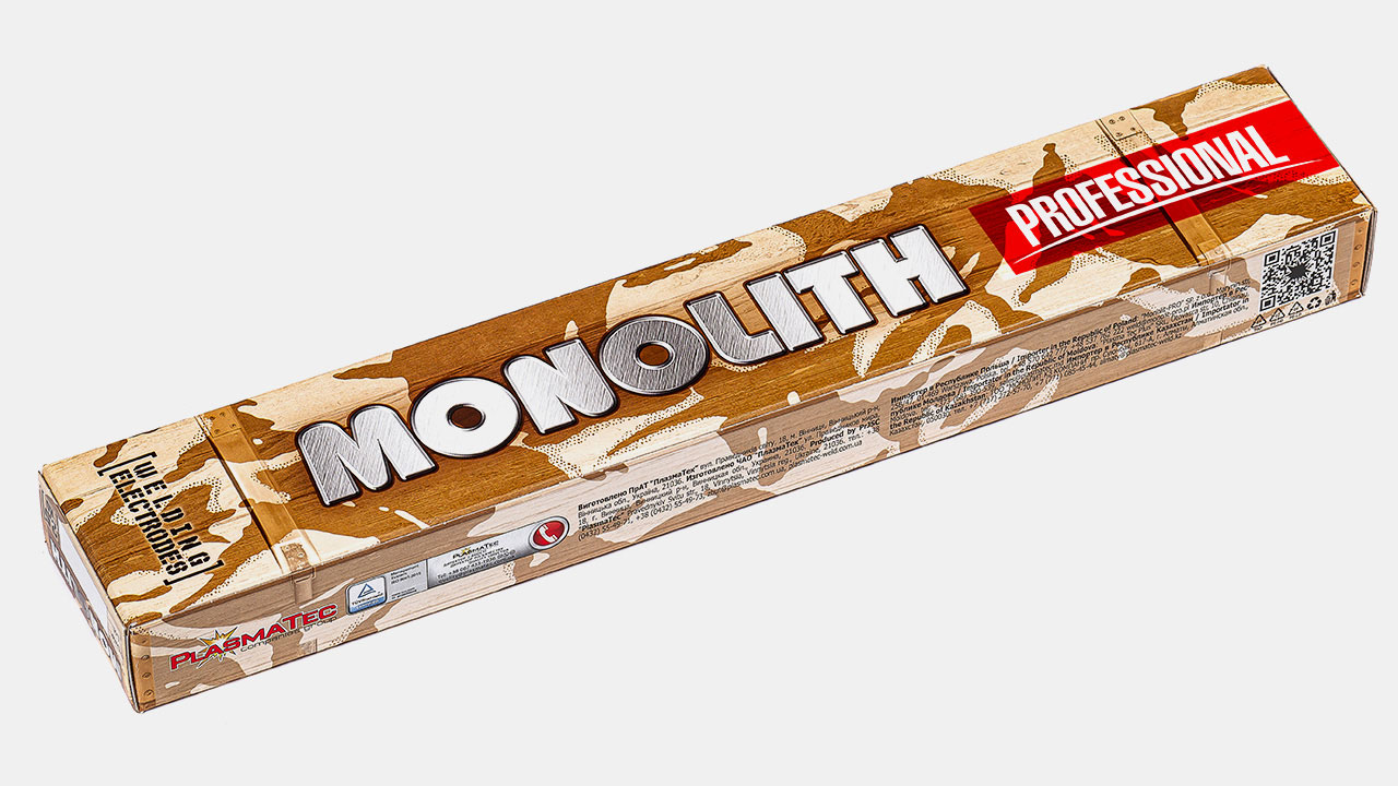 Електроди Моnolith PRO призначені для ручного дугового зварювання в усіх просторових положеннях конструкцій з вуглецевих марок сталей, які поставляються по ДСТУ 2651/ГОСТ 380 (Ст 0, Ст 1, Ст 2, Ст 3 всіх груп А, Б, В і всіх ступенів розкислення – "КП", "ПС", "СП") і по ДСТУ 7809 (05кп, 08кп, 08пс, 08, 10кп, 10пс, 10, 15кп, 15пс, 15, 20кп, 20пс, 20).
